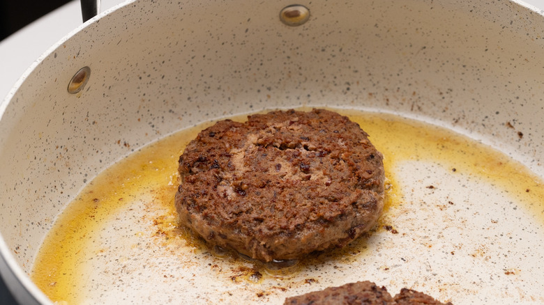 Cook the burgers: Heat the oil in a large frying pan to medium-high heat.