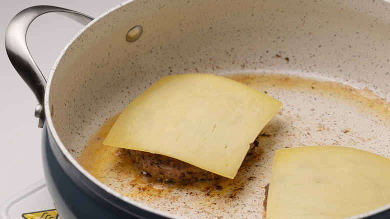 - Top each burger with a slice of cheese and allow to melt for 2 minutes.