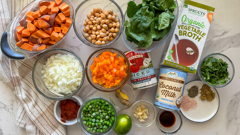 Gather the ingredients for slow cooker vegetable curry