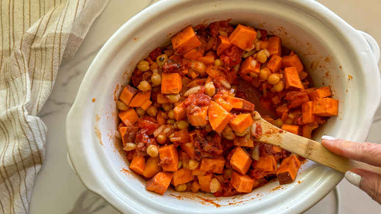 - Cover and cook on high for 2-2 ½ hours or low for 4-5 hours, or until the sweet potatoes are tender.
