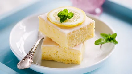Not only does it require just three ingredients, but it only takes three steps: Mix the ingredients in one bowl, pour into a 9x13 baking dish, and bake at 350 degrees Fahrenheit for 20 to 30 minutes. You'll know the cake is done when the edges are golden brown and a toothpick or knife comes out clean. The result is a light and fluffy cake, full of bright lemon-y flavor. You'll hardly be able to tell the difference between this and a lemon cake with more ingredients.