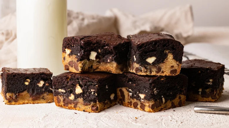 Brookies are one of the greatest marriages in kitchen history. They're brownies and cookies, combined into a cookie bar. It's a perfect solution for anyone with a picky crowd to feed, and a guaranteed eye-catcher. Plus, it's just plain fun to say the word "brookies."
