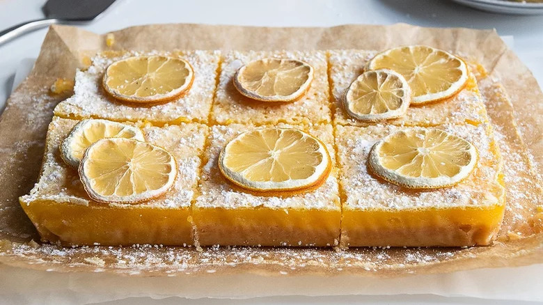 Lovers of lemon will get a citrusy kick out of lemon date cookie bars. Filled with sugar and zest, they're a great alternative to less substantial lemon squares. In comparison to that classic treat, their texture is closer to that of a dense cheesecake atop shortbread. Lemon date cookie bars are also visually stunning: One glance at their delicious yellow hue will make your mouth water. A sprinkle of powdered sugar is the perfect finishing touch.