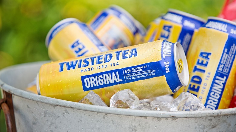 The answer may surprise you. According to Twisted Tea, the company brews its product similarly to how brewmasters would brew beer. What makes Twisted Tea an alcoholic drink is a malt base derived from beer. Since malt bases are usually made from fermented grains, such as barley, wheat, or rye, Twisted Tea is not gluten-free. You may think it's easy to replicate Twisted Tea at home — simply mix one of the most popular beers with flavored iced tea and call it a day — but the process is not as simple as that and can be quite involved.