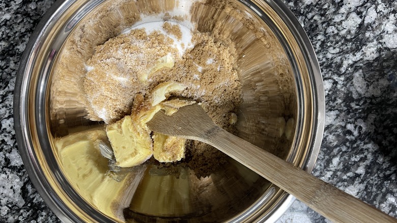 In addition to the salty taste from the miso, Barrett finishes these cookies off with smoked salt, telling us, "I love how the smokiness adds another note of unexpected flavor — there's a lot happening for your taste buds in this little cookie." With the sweetness of brown sugar and a bitter touch from dark chocolate, the cookies may have a complex flavor profile, they're not difficult to make. Two mixing bowls and some stirring utensils are all the equipment required — there's no need for a mixer or the browning of butter. "I wanted this to be a simple cookie, not a full-on production," Barrett shares.