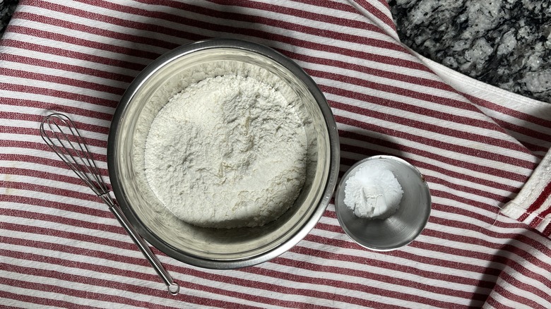 - In a separate mixing bowl, whisk together flour, baking powder, and baking soda until well combined.