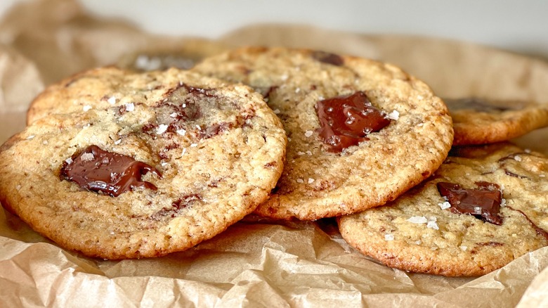 While standard chocolate chip cookies are a classic, there are many ways to upgrade them with new ingredients ranging from dried fruits to bacon bits to cayenne pepper. Recipe developer Kara Barrett, however, is going with a savory ingredient you don't see in a lot of cookie creations, making use of the Japanese fermented soybean paste known as miso. In fact, her cookies get a double dose of umami goodness, as she uses both white and brown miso.