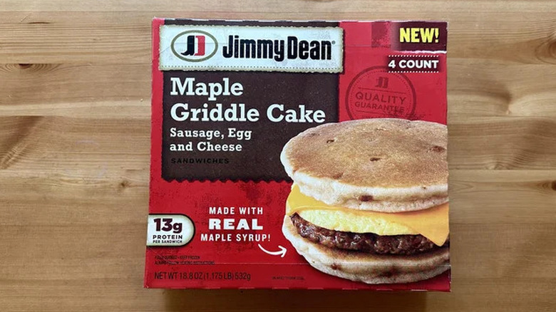 The other good news is that a typical Jimmy Dean Maple Griddle Cake with sausage, egg, and cheese contains 13 grams of protein, which can help keep you feel full for longer. However, if you're looking for a vegetarian option, plant-based sausages have come a long way, and Jimmy Dean has a range of options for all diners.