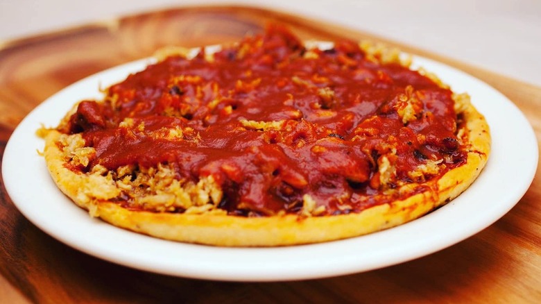 According to the website, Horest Coletta came up with the idea because he was having a hard time selling traditional pizza in Memphis — in the '50s, pizza was still an unfamiliar food in the city. So, he added some barbecue pork, which people already knew and liked, and a classic was born. The restaurant's version of the dish is topped with barbecue sauce, cheese, and pulled pork cooked for eight hours.