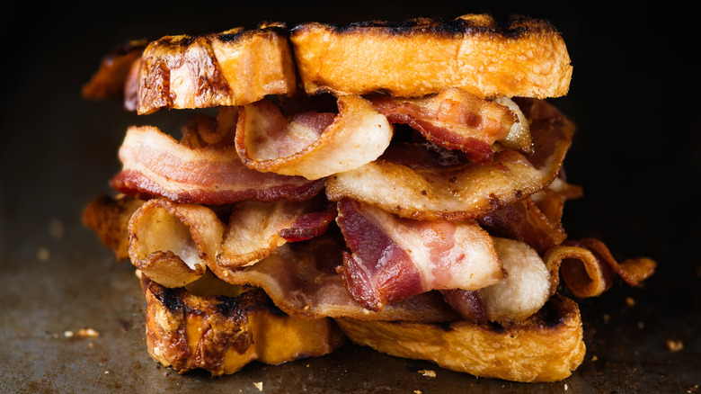 The British are not known for having the most flavor-forward cuisine, as evidenced by its soggy peas and bland porridge. But the truth is that the Brits have plenty to be proud of in the kitchen, especially when it comes to pork-forward dishes like bangers and mash or bacon butties. These bacon butty sandwiches are made with a thicker, wider version of American bacon (called Irish bacon or rashers), bread, and butter. The "butty" part of the name is a quintessentially British way to shorten the word "butter."
