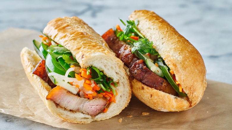 It's up to debate whether the bánh mì should be considered a traditional recipe. The bread component resulted from the French occupation in the late 1800s. The colonists brought along their plentiful wheat stores and started making French bread. Eventually, the locals adopted their own style of Vietnamese baguettes and eventually used them to sandwich an array of fillings, like marinated chicken thighs or charred pork. You'll also find recipes with protein-rich egg fillings, as well as ones that utilize regional spices and flavors. Regardless of the filling, the bánh mì is one sandwich that hits the spot any time of day.