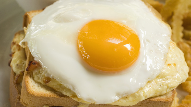Aside from that, you may find that your next croque madame differs slightly from the one you had at that cute little bistro last week. That's because, as with any recipe, there are a number of creative twists that can be applied to it. For instance, don't be surprised if your open-faced sandwich has been dipped in whisked eggs before it was cooked or if it's on brioche bread instead of a sourdough slice. Likewise, you may experience a croque madame made with a range of different cheeses or hams. This is nothing to be afraid of. Each and every iteration is likely to be as tasty and filling as the next.