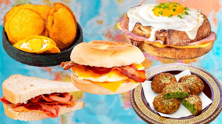 Breakfast sandwiches are an ideal way to quell those morning hunger pangs — especially when you're short on time and need something manageable to eat as you walk to the subway or get in your car. These handheld wonders offer a perfect amalgamation of flavors, textures, and nutrients that don't need to be enjoyed leisurely at the breakfast table (although they certainly can be eaten that way, too). Not only that, but breakfast sandwiches, like other foods, can adapt to the typical ingredients and traditions followed by various cultures worldwide. In other words, Americans may love sandwiches, but we do not have a monopoly on them by any means.