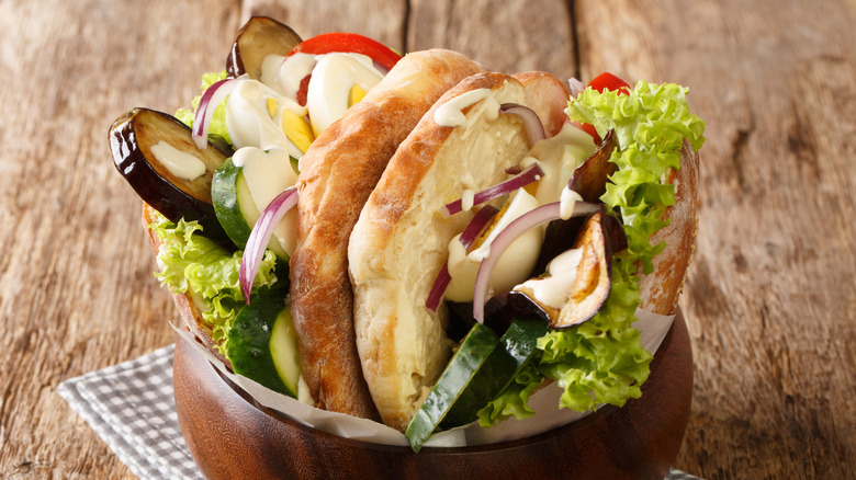 The sandwich's story was said to have begun in the 1960s at a humble Israeli street food stand run by an Iraqi man named Sabich. Bus drivers liked to stop there for a bit in the early mornings, so they asked Sabich to provide something that was both breakfast-worthy and portable. The inventive man reportedly thought to simply put the contents of his typical Iraqi breakfast inside a pita-like bread called laffa. The result was the sabich sandwich, which is filled with the delicious, vitamin-packed veggies that anyone would need to start their day on the right foot.