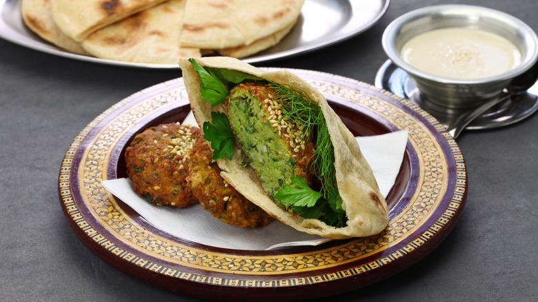 Some historians even believe that the fava bean patty was the original falafel. They speculate it was created to cater to the palates of British soldiers that occupied the country starting in 1882. The result was the ta'ameya, which would become the base of an excellent breakfast sandwich. Egypt's breakfast eaters prefer to enjoy the ta'ameya in the morning, especially when it's tucked into a traditional, pita-like flatbread called baladi. The dish is very affordable, meaning all social classes can eat it. The sandwich also often comes served with chopped onion and tomatoes (not unlike a falafel sandwich), which helps add a reprieve from the greasiness of the patty.