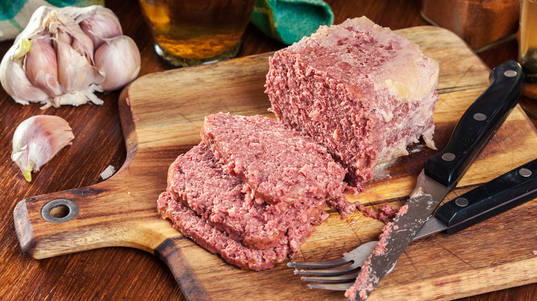 Much like Spam, canned corned beef can be eaten straight from the packaging. However, it will be much more delicious if quickly browned on the pan beforehand. Since the meat is already seasoned, an aromatic like garlic or ginger is usually enough to round out the flavors. Feel free to whip up a sauce to amp the flavors up even further. Teriyaki sauce is often used to offset the meat's deeply savory taste with a caramelized sweetness. On the other hand, if it's tanginess you prefer, tomato sauce is an all-time foolproof choice.