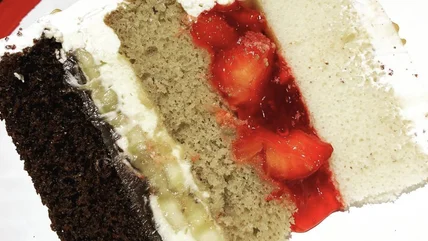 If you've struggled to pick one flavor for a perfect birthday cake, bakers in Chicago came up with an answer for you. The Illinois classic Atomic Cake offers multiple cakes packed into one. The exact order of the layers sometimes varies depending on what recipe you use, but it's traditionally composed of banana cake, banana cream, yellow cake, strawberry glaze, chocolate cake, chocolate ganache, and whipped cream frosting. Why stop at one cake when you can have three?