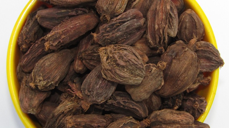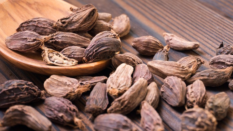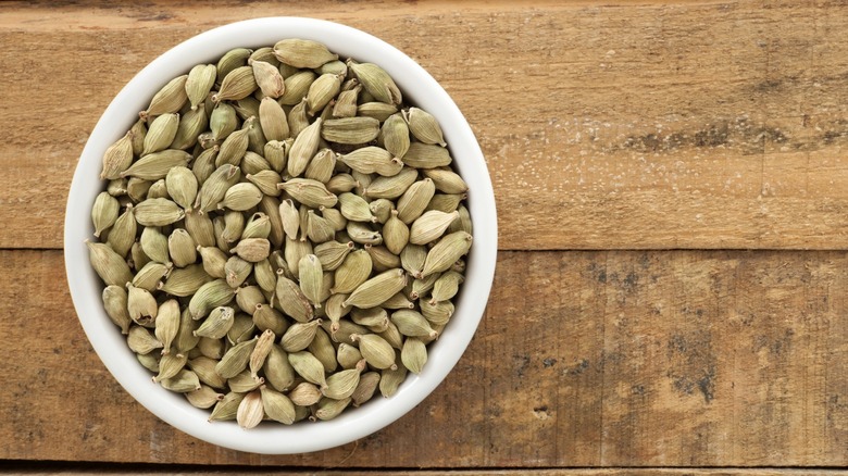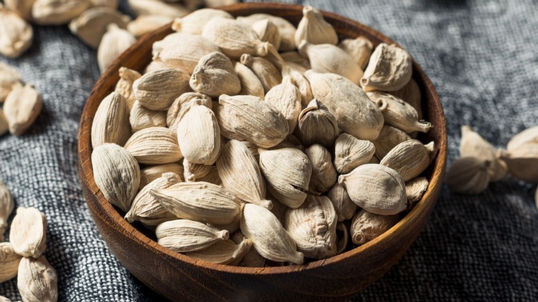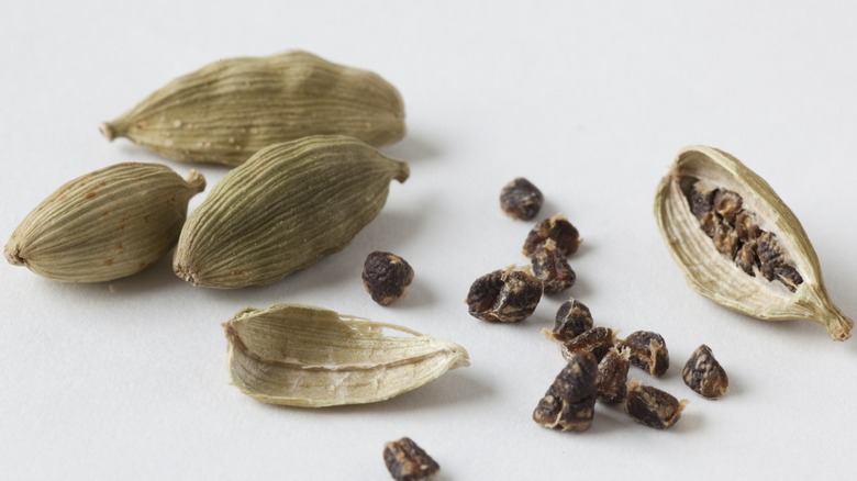 When you walk down the spice aisle of your local grocery store, the cardamom you can find there is most likely ground white cardamom. Another common form you'll find cardamom in at stores is as bleached, whole white seeds. Since white cardamom is more popular across many different cuisines and dishes, offering the uniform white pods makes using cardamom more user-friendly. This consistent hue is part of why white cardamom is so popular since it won't impact the color of baked goods. Most likely if a recipe is calling for cardamom, it's referring to white cardamom.