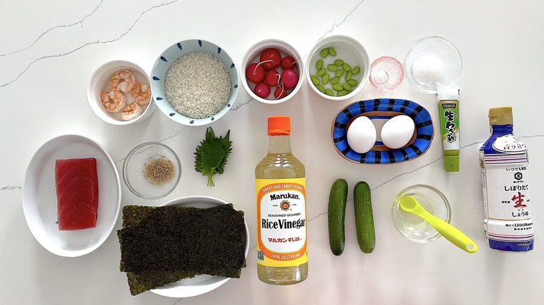 Gather the temarizushi ingredients