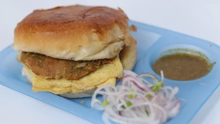 Once the patties are formed, they get coated in a frothy blended egg mixture and then fried lightly in oil. Raw onion is the most common topping, and green chutney and raita (not to be confused with tzatziki) are the typical condiments to slather on the lightly toasted buns. They're no-frills, comforting meals that form a core memory of many childhoods and remain a treasured on-the-go meal long into adulthood.