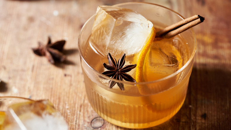 For those who like something simple yet crowd-pleasing, a fizzy drink is the way to go. You can shake the chai syrup and bourbon together with ice, strain that mixture, and then top it with prosecco, champagne, apple cider, sparkling water, or ginger ale. Sprinkle in some warm spices or add a cinnamon stick and you've got a new take on fall drinks that everyone will be fawning over.