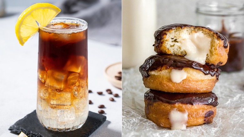 A lemon iced or glazed donut is the perfect cold brew companion on a summer day. When you're in the mood for a sweet donut treat but are sick and tired of the classics, a citrusy donut is the perfect choice to satisfy your craving. Citrus provides a complex flavor profile, offering tangy, sour, creamy, and candy-sweet notes. Bhavi Patel explains that the acidity in this lemony confection pairs well with an intense yet smooth cold brew, exposing any subtle citrus notes in the coffee as you alternate between sips and bites. Be bold and try this with a black cold brew to fully immerse yourself in the subtleties of the coffee's taste and texture.