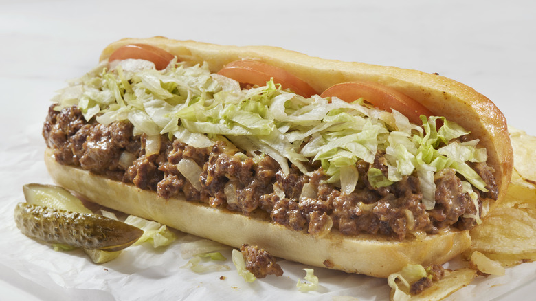 The chopped cheese sandwich has been an internet star for years, and as with so many famous sandwiches, there are a few rules for getting it right. The first thing to know about it is that it is not a cheesesteak, and it's not a hamburger, no matter how much some people (who think the chopped cheese is nothing but New York City hype) may tell you. Despite combining some aspects of both recipes, the taste and texture of a chopped cheese is meaningfully different from both these things. It's made from ground beef — not the sliced steak of Philly, but ground beef that has been chopped and griddled with spices in a way distinct from a burger as well. It's served on a hero or hard roll, not a hamburger bun. Finally, unlike its other beefy cousins, there's only one right cheese to put on it, and that is American cheese.