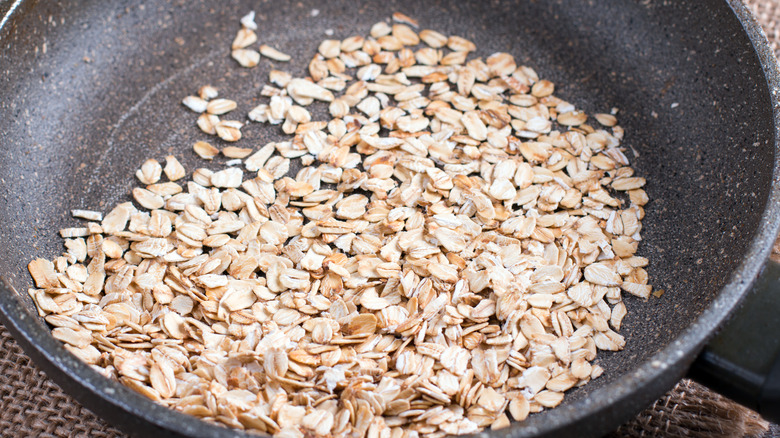 If you're not looking to add extra ingredients to your oatmeal cookies, then toasting the oats is a great way to switch up the flavor. When you toast oats on the stovetop, they become, well, toasty — slightly browned, warm, and nutty in flavor. And, if we're being honest, oats aren't exactly packing in much flavor to begin with, so this small but easy step does wonders in enhancing the foundation of your cookies.