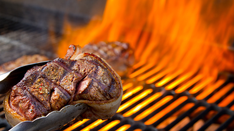 Heat a heavy skillet over medium-high heat (or use a similar grilling temperature) for the best results for about five minutes. This heating method makes a hot pan (or grill) with plenty of heat reserves. Sear the steak on each side until you've developed a nice char — a couple of minutes per side should do it. Then, move the skillet to the oven or a cooler zone on the grill, and let the less intense heat penetrate the steak's interior until reaching your desired temperature.