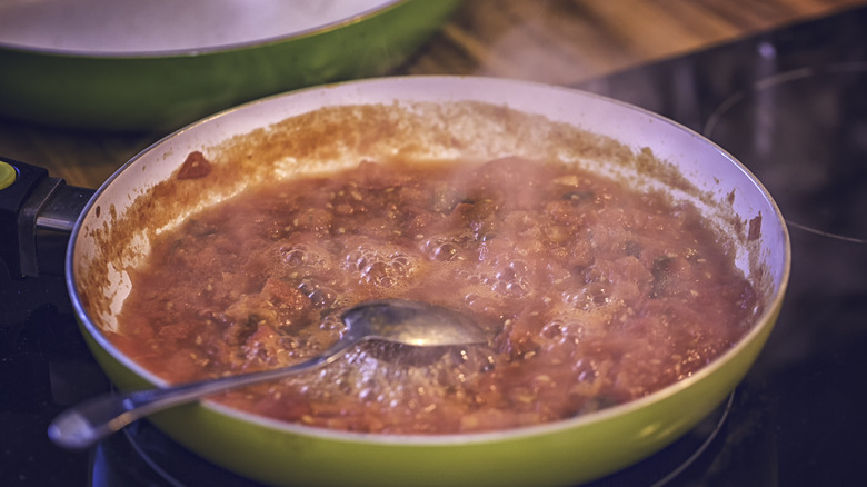People have been fighting over how to cook tomato sauce for centuries. Generational knowledge and traditions sometimes take precedence over science, though. A tomato is roughly 90 to 95% water, and converting a watery substance into a sauce requires some manipulation. In most cases, cooks rely on evaporation to thicken the sauce. The solid components of the tomato hang in suspension in the liquid, and the goal is to reduce the quantity of liquid to concentrate the solid. That doesn't mean you should boil the sauce, though.