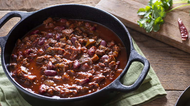 Given its versatility, it's no wonder there are so many delicious chili recipes for folks to follow. Even if you have your own recipe, it may change slightly each time you make it based on what you have or what you're in the mood for (spicy one day, tomato-heavy the next). No matter the recipe on hand, you can always alter the type of meat you use, and canned Vienna sausages bring a fun and distinct flavor profile to any batch of chili.