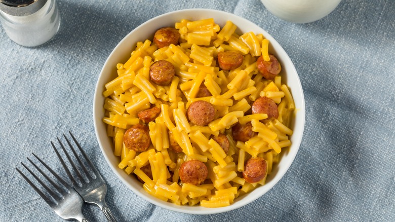 Toss Vienna sausages into macaroni and cheese