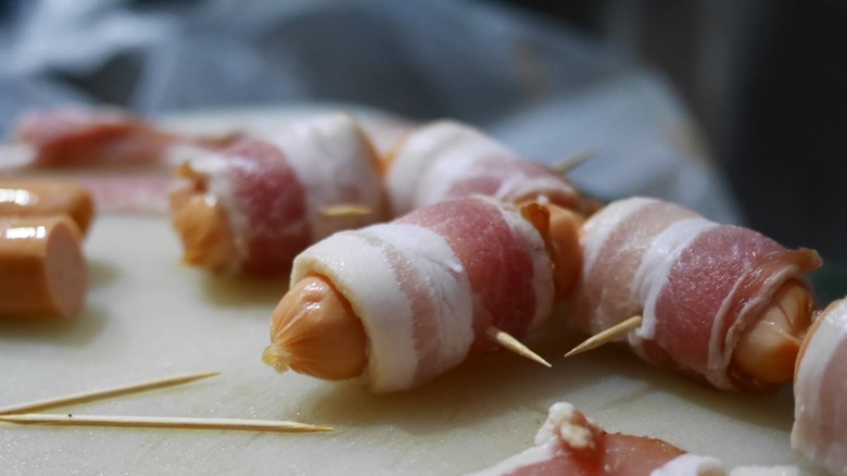 From bacon-wrapped hot dogs to bacon-wrapped asparagus, the salty pork product is a top choice for enhancing finger foods. Along those lines, bacon-wrapped Vienna sausages can be the perfect hors d'oeuvre at any gathering. This appetizer pairs crispy bacon with the soft, slightly chewy Vienna sausage for a scrumptious treat.