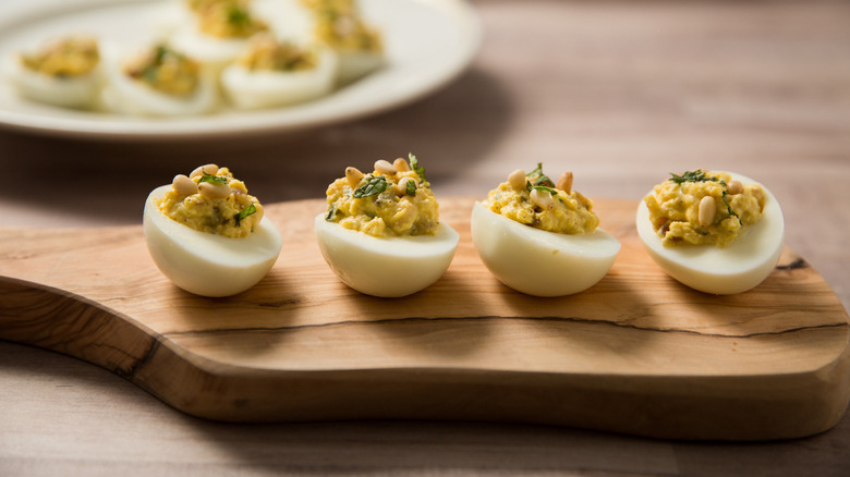 These deviled eggs are inspired by their ancient roots, drawing on Mediterranean flavors like mint and pine nuts to add a twist to a classic party food.
