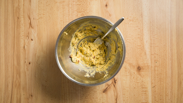 - Add the yogurt, honey, lemon juice, cumin, salt, and black pepper to the yolks and mash well with a fork until evenly mixed.