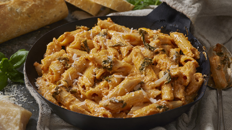 Though underrated, ricotta is the best cheese to include in your pasta dishes. Ricotta is made from the remnants of the cheese-making process, but a dollop or two of whipped ricotta can be the star of any dish. It has a mild, milky flavor that gives pasta a subtle boost and an incredible texture. While it can initially be a little grainy, some time in the blender or food processor is the best way to make whipped ricotta as smooth as possible. Once whipped, it can be folded into pasta a few minutes before taking it off the stove, giving it a flavor more indulgent than heavy cream.
