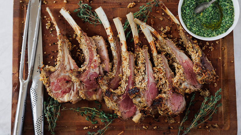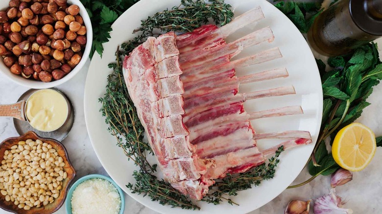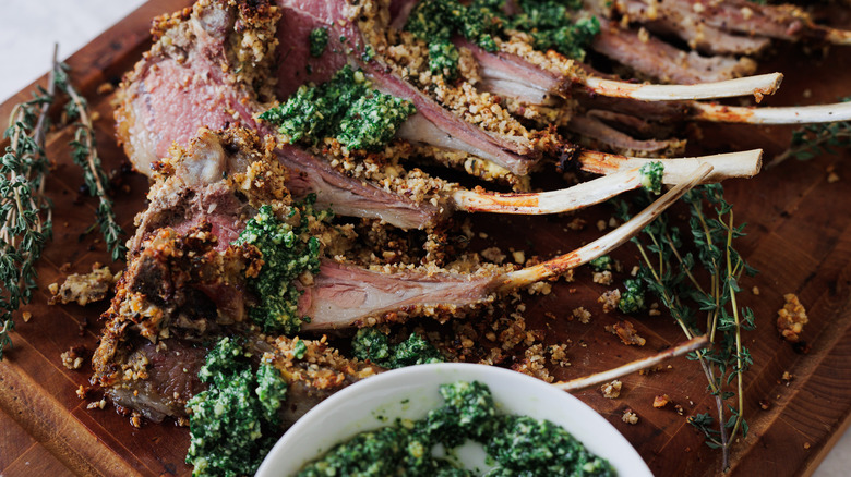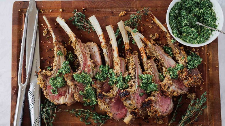 Lamb chops are a classic dish that can be found on menus worldwide, but we take it to a whole other level of flavor in this recipe thanks to a unique hazelnut crust and minty pesto. Mint and lamb are both quintessential springtime ingredients, and their pairing has been enjoyed for centuries in various cultures across the world, according to Ksenia Prints of At the Immigrant's Table. This recipe takes cues from Persian cuisine by combining the rich nuttiness of hazelnuts and the bright, herbaceous notes of mint and parsley with tender, juicy lamb with to comprise one delicious meal.