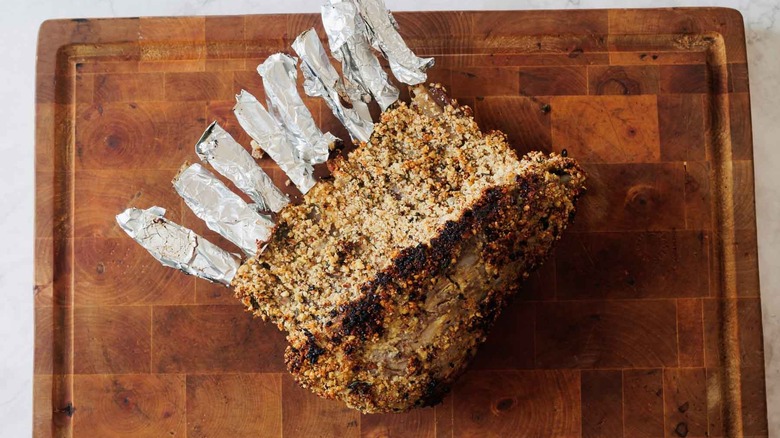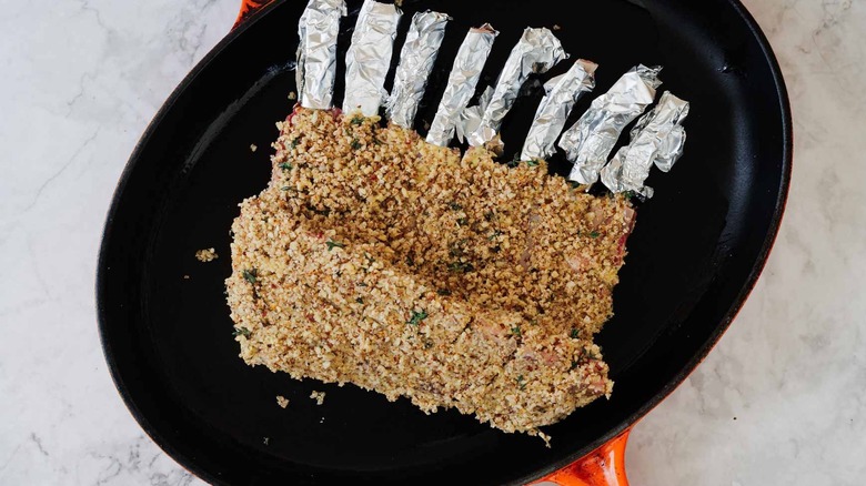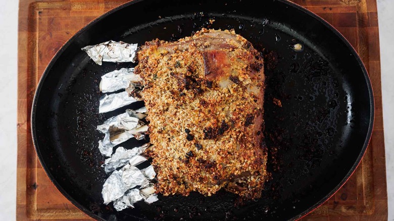 If you opt for individual chops, follow the same instructions for seasoning and coating them with the hazelnut-herb mixture. However, instead of searing the rack as a whole, you'll need to sear the chops individually in the skillet. Make sure to get a good sear on both sides of each chop before transferring them to the oven.