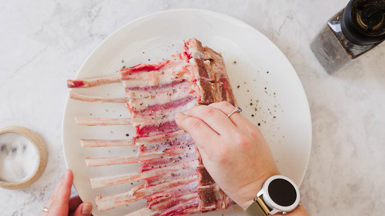- Make the lamb: Season rack with salt and pepper.