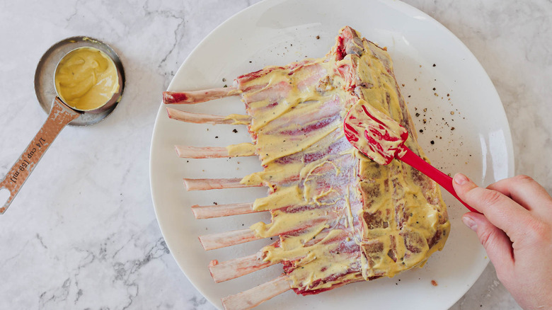 - Spread mustard on the entire rack.