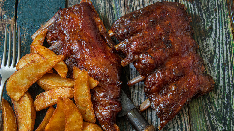 No matter which tasting notes are in bourbon, the consummate flavor is deep and full-bodied. Although that's part of the draw of bourbon, it becomes too much when one piece of meat is completely slathered in it — especially if it's something rich like beef or pork. To prevent it from becoming overwhelming, a splash of acid will stop the bourbon from dominating a marinade while still highlighting its intricate flavors. In our maple bourbon steak tips dish, recipe developer Chanel Murphy-Lowe opts for pineapple juice to balance out the flavors while still maintaining the sweetness from both bourbon and maple syrup.