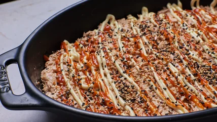 Line a baking dish with flattened layers of your favorite sushi toppings, cooked rice, and seasonings. Once the layers are pressed into a glass dish, they can be topped with mayo, sesame oil, and mirin sauce to be taken out and served warm. This flavorful twist on an easy casserole will have you, too, wanting to post your creations on your feeds to help spread the delicious trend.