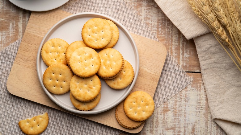 Since there are so many types of crackers available on the market, the possibilities are endless for this appetizer. For a simpler take, make the dish with classic varieties like butter crackers or saltines. If you're craving more flavor, go for a seasoned version such as everything bagel crackers. Even gluten-free crackers are fair game for this two-ingredient appetizer.