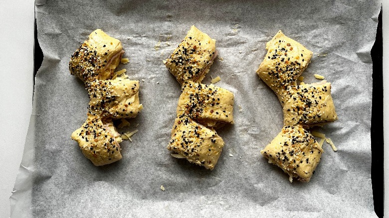 When deciding what ingredients to use for savory bear claws, consider which flavors of savory croissants you typically go for. For example, spinach with Swiss cheese is always a classic. Herbs with cheese — and maybe garlic too — also pair beautifully. For another spin on breakfast, try making spicy egg and ham- or bacon-filled bear claws. Of course, you can't go wrong with our savory ham and cheese bear claw recipe, either. You could even adapt our spinach, prosciutto, and goat cheese croissant recipe to fill homemade bear claws too.