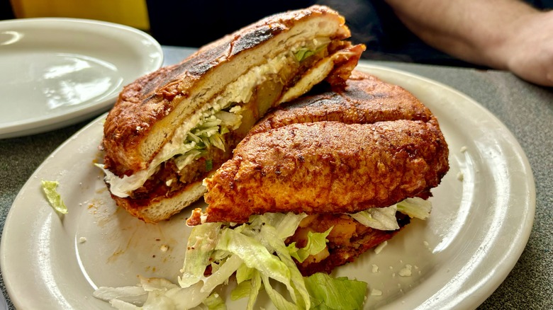 The torta ahogada features your choice of meat with refried beans and cheese stuffed inside Mexican telera bread. After it's assembled, it's drenched in a spicy orange sauce and served with crema. The heat is worth every bite. Likewise, the pambazo is a spicy and unique breakfast sandwich stuffed with chorizo and fried potatoes on telera bread. It's then dunked in a guajillo sauce and crisped up on the griddle. You won't regret getting one of each, even if you're dining alone.