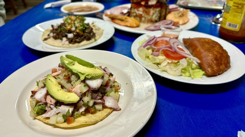 Mariscos Sinaloa is a Sinaloan restaurant located along Summer Avenue in Memphis. It offers a kitschy ambiance and an array of decent menu items to choose from, including fresh seafood, from aguachile and ceviche to tostadas and fried whole fish. Its selections range from tapas-sized appetizers to platter-sized entrees, all of which are meant for sharing family style. A must-try is the Torre de Mariscos Gigante, which translates to "giant seafood tower" — a tall ensemble of shrimp ceviche, cucumbers, tomatoes, and avocado, drizzled with a Maggi-like, savory sauce.