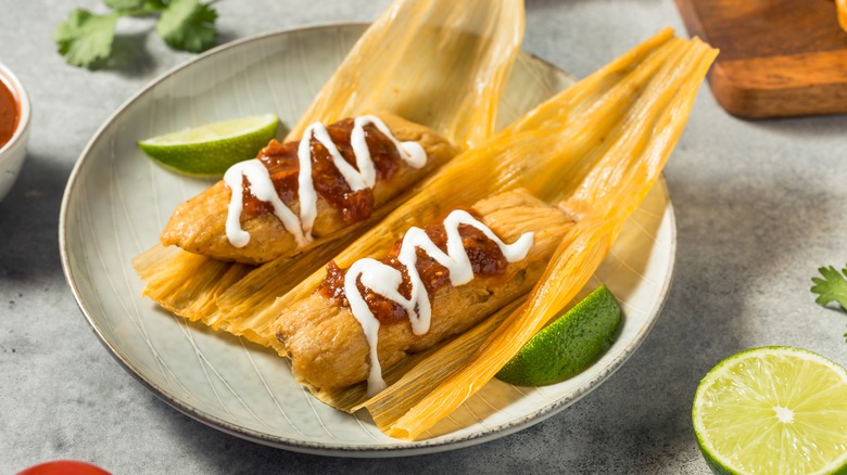 Tamales are already pretty great on their own. The soft cornmeal dough combined with the savory fillings makes for an addictive, rich bite. You can make a delicious batch of Instant Pot spicy beef tamales or the more traditional tamales de rajas. Either way, you end up with something tasty. This flavorful, portable dish doesn't need much else added, but if you want to elevate your dining experience, try pairing your next tamale with a paloma cocktail.