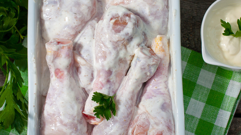 Yogurt marinades have a gentler tenderizing effect than other ingredients, which is why you'll often find more potent acidic elements like citrus juice or vinegar included in the recipe. All of these will work beautifully with poultry as well. And if you want a combination of creaminess and acidity, mix the two together and throw in seasonings that match the flavors of your meal (such as garam masala for an Indian-style feast or Italian seasoning for a Mediterranean one). Since chicken and turkey can handle practically anything you throw at them, you don't have to worry about going too hard with your marinade.