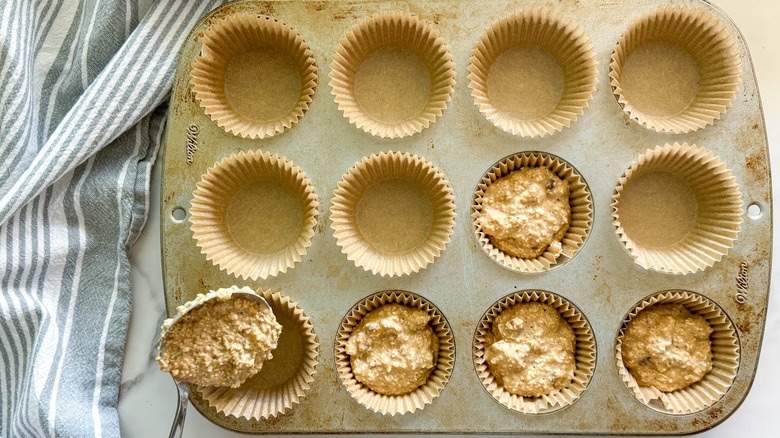 Distribute the batter into the prepared muffin tin.