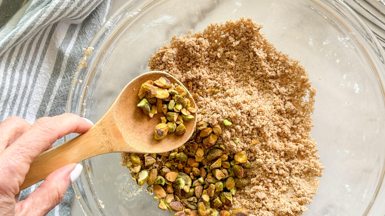 - Stir in the remaining pistachios.